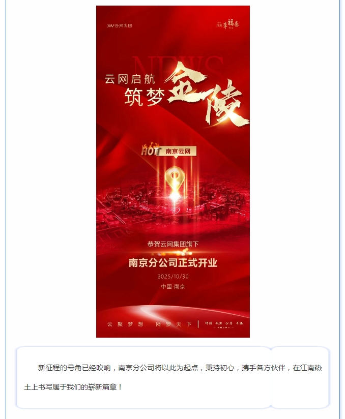 迎来了河南云网企业管理集团有限公司分公司南京云网广告有限公司的盛大开业。